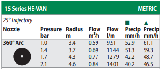 Sprinkler Rain Bird Nozzle HE-VAN 15" Black (12"-15") 3.6m - 4.6m, 0° - 360°