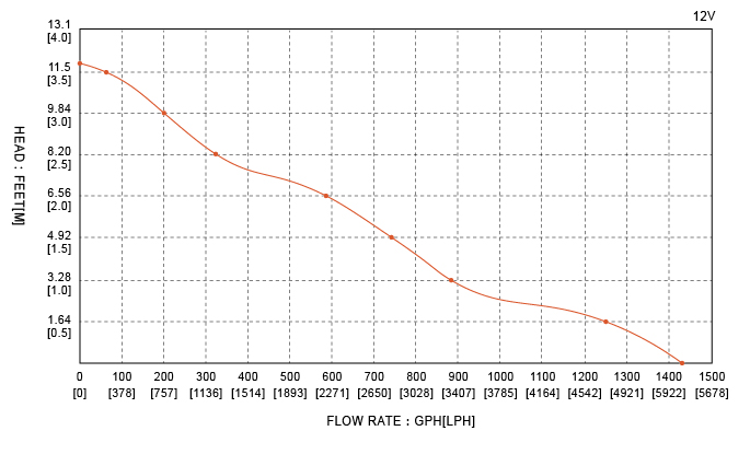90.8L/m flow rate, 5m head, 1 1/8" (29mm) hose barb outlet